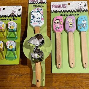 ◦ Includes - Set of 6 magnetic bag clips, set of 3 mini spatulas and large spatula with Snoopy cookie cutter
