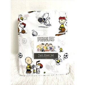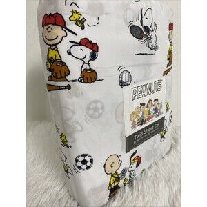Peanuts Snoopy Twin Sheets Set 3 Pieces Boys Sports Printed White
