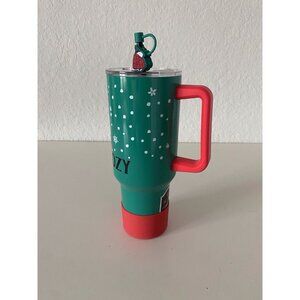 Peanuts Snoopy Wearing Puffy Coat Puffer Jacket 40oz Stainless Steel Tumbler With Straw Cover Christmas Warm and Cozy Snowflakes Rubber Sleeve NEW