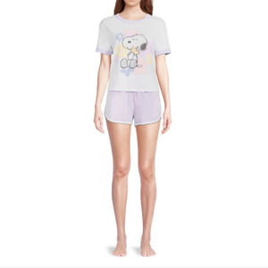 Peanuts Snoopy Women's Size S (4-6) Ringer Tee and Lounge Set, 2-Piece