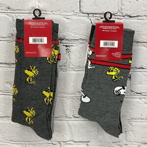 Peanuts Snoopy Woodstock Crew Socks 4 Pair Mens Shoe Size 6.5 -12 Gray/White/Red