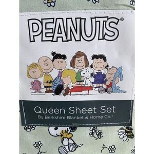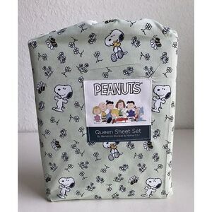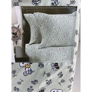 Peanuts Snoopy Woodstock Floral Green Spring Queen Size Soft Sheet Set Bees NEW