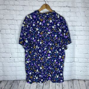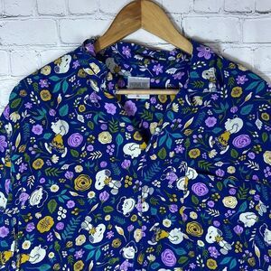 Peanuts Snoopy Floral Short Camp Hawaiian Blue Shirt Men’s Size XL