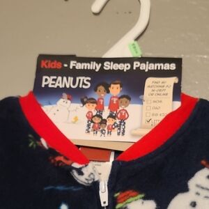 Adorable Peanuts footie with snowman print. Soft and cozy for bedtime.