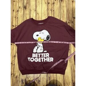 Peanuts Womens Sweatshirt Size L Burgundy Round Neck Better Together Print