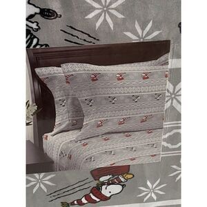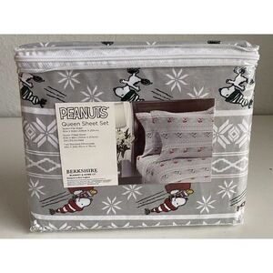 Peanuts Snoopy Sledding Ice Skating Winter Queen Size Super Soft Sheet Set NEW