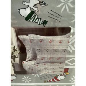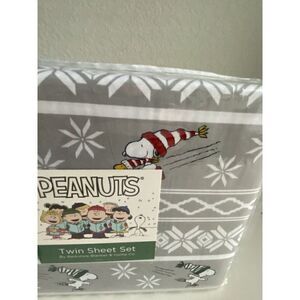 Peanuts Snoopy Sledding Ice Skating Winter Twin Size Super Soft Sheet Set NEW