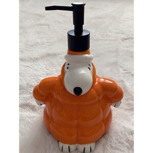 Peanuts Snoopy Soap Lotion Dispenser Orange Quilted Puffer Puffy Jacket NEW