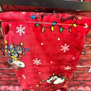 Peanuts Snoopy Woodstock Christmas plush Throw blanket 60” x 70” “ Merry & Bright” snowflakes multicolored New