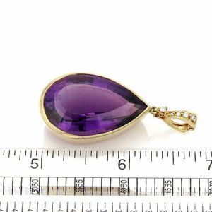 Pear 35.09ct Amethyst & Diamond 14k Gold Pendant