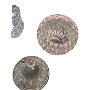 Add a touch of vintage elegance to your home with this charming set of pear and apple cut glass crystal bowls! This delightful set includes a lidded candy jar and two matching bowls, perfect for displaying your favorite treats or adding a touch of sparkle to any room. The intricate cut glass design catches the light beautifully, creating a dazzling display. These vintage pieces are sure to be a conversation starter and a treasured addition to your collection. Don't miss out on the opportunity to own this stunning set!