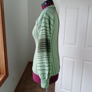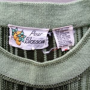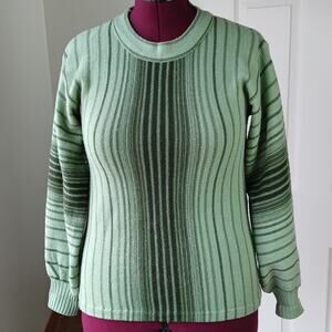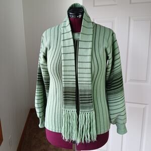 Pear Blossom Vertical Striped Sweater and Scarf Set Medium VTG 70s green black