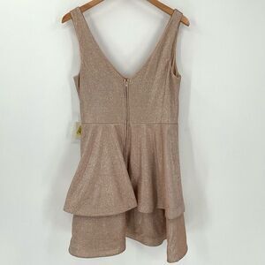 Pear Culture Sleeveless Fit & Flare Metallic Tiered Mini Dress Champagne Size 15