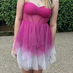 Pear Culture Strapless Corset Lace-Up Back Glitter Ombre Dress Size 11/12