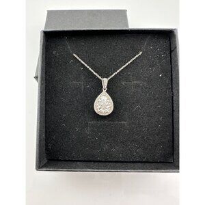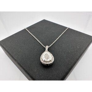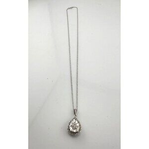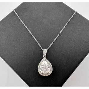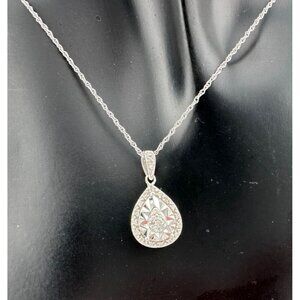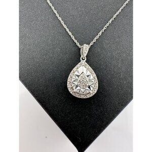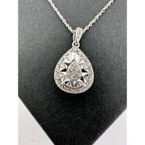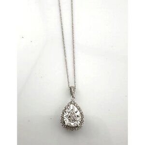 Pretty tear drop (pear shaped) natural diamond necklace. illusion setting in middle to maximize the shine. .925 Sterling Silver with Rhodium Coating for protection and added shine.