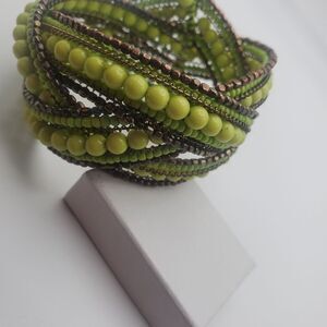 Pear green beaded pea in a podcast cuff bracelet B1218