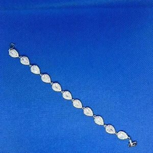 Cubic zirconium bracelet/tennis bracelet with pear-shaped stones and halo setting.