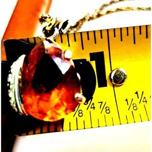 Pear shaped Citrine and Cubic Zirconia Gemstone Pendant Silver Tone Necklace 22"