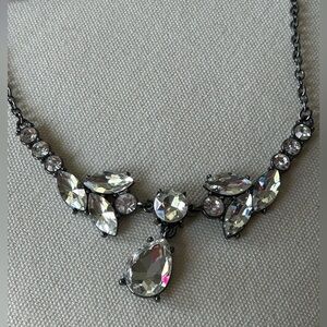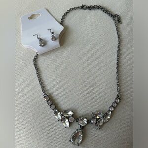 Pear, solitaire and marquee, cut, clear crystals, black, gunmetal tone set