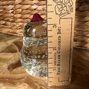 A beautiful Pear with purposeful bubbles throughout, art glass/paper weight. In good used condition. Some light surface scratches. Please refer to all pictures for current condition and measurements