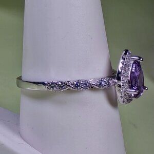 Pear-Cut Simulated Alexandrite & CZ Sterling Silver Ring Size 9 (NWOT)