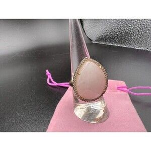 Pear-shaped smoky pink faceted stone surrounded by tiny crystals.