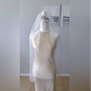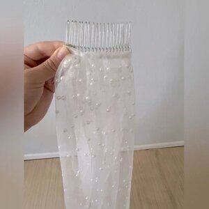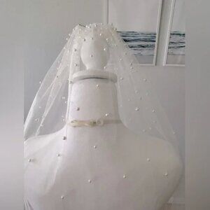 Pearl Beaded Short Wedding Veil with Comb Fingertips Length