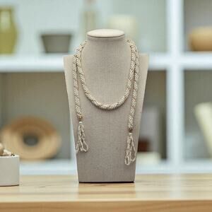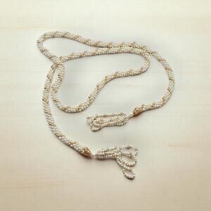 Pearl Beaded Tassel Necklace Long Rope Flapper Style Vintage Costume Jewelry