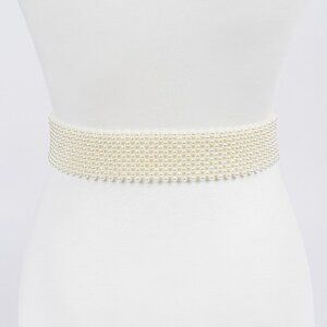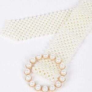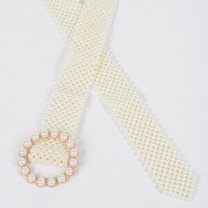 Add timeless elegance to your wardrobe with the Pearl Beads Belt. This stunning accessory features a sleek PVC base adorned with lustrous faux pearls for a refined finish. Perfect for cinching the waist of dresses or elevating tailored separates, this belt offers both structure and charm. Lightweight yet impactful, it brings classic glamour to any outfit. A go-to piece for polished styling day or night.