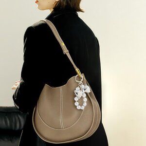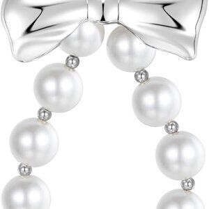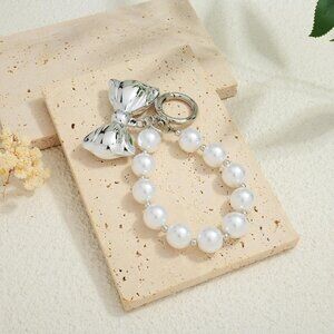 Features: Stunning white-gold plated bow with a strand of faux pearls, perfect as a keychain, bag charm, or phone accessory. Lightweight and durable alloy with a polished finish, designed to elevate your everyday essentials with a chic vibe.