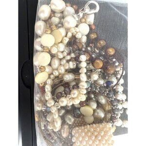 A versatile collection of vintage-inspired pearl bracelets weighing 8oz. Features various colors and styles, ideal for jewelry lovers or creative crafting projects.