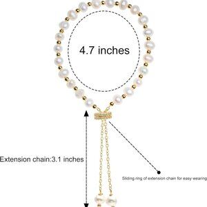 Features: Handcrafted with high-quality pearls and 14k gold-plated stainless steel, this bracelet features a delicate link chain and a sliding buckle for easy, secure wear. Each pearl measures about 5-6mm, adding just the right touch of sophistication.