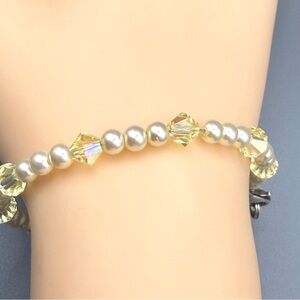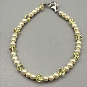 Pearl Bracelet with Sterling Silver Lobster Clasp Crystal Like Accents PRETTY🔥