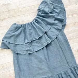 Pearl & Caviar Linen Mix One Shoulder Maxi Dress | Dusty Blue Size XS/S