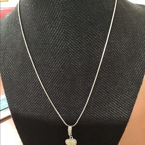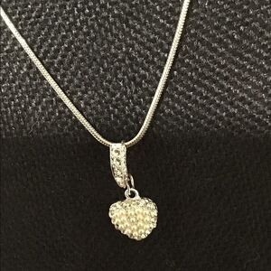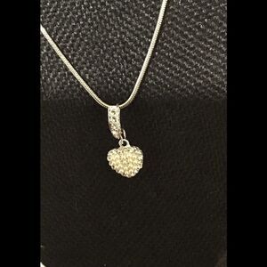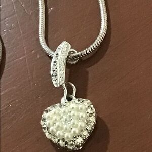 Pearl & Crystal Silver Heart Pendant Necklace, 17”, NEW