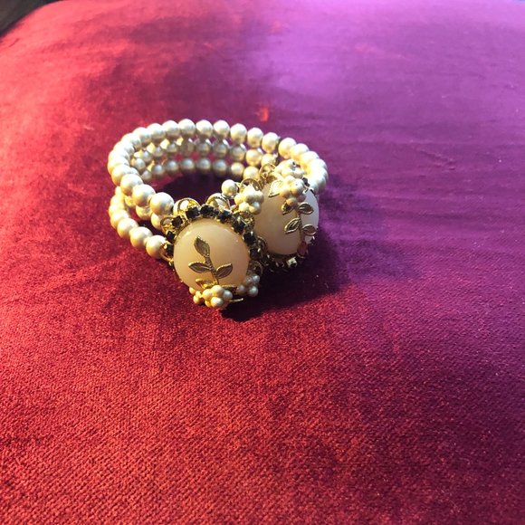Pearl Cuff Bracelet (3 ring cuff), Gold Tone Trim, White/Ivory Pearls, Small/Medium Wrist, Excellent Condition