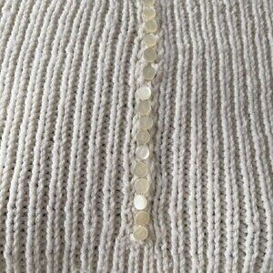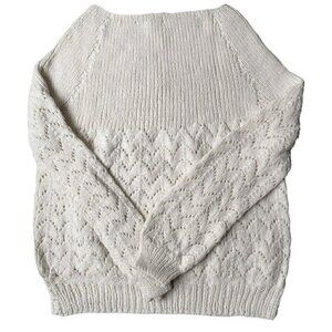 Pearl Detail Granny Core Hand Knit Chunky Cable Ribbed Sweater Ivory Women’s L