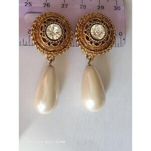 Lovely Maxine Denker clip on earrings in like new condition. Signed Maxine Denker. Gold plate, faux diamonds and pearls, lovely heirloom pieces.