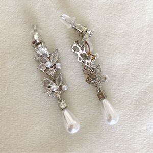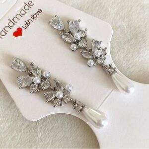 Pearl Diamond Silver Dangle Drop Earrings Bridal New