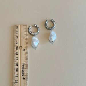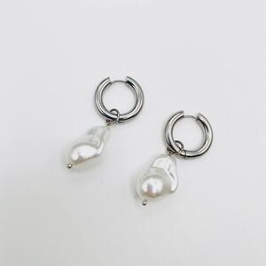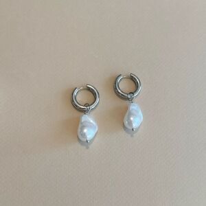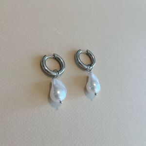 These elegant silver earrings feature a beautiful pearl drop, perfect for adding a touch of sophistication to any outfit.