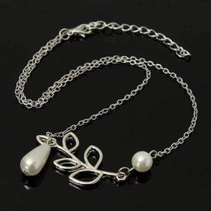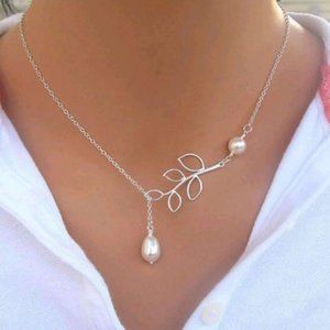 Pearl Droplet Thread Necklace 14K White or Yellow Gold plated for Woman White Pearl