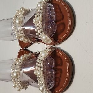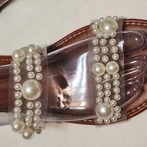 Pearl Embellished Clear Sandals, Size 43/11.5