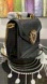 Chic mini bag in sleek black. Features ornate gold emblem. Ideal for stylish outings.
