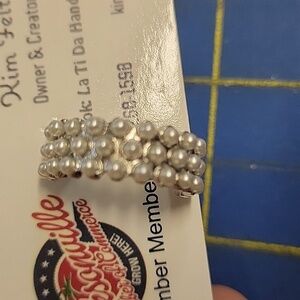Pearl Faux Hoop 0.5" Silver Tone Earrings