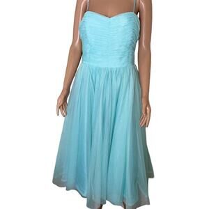 VINTAGE - Pearl Georgina Chapman Mint Blue Prom Dress Evening Gown Formal sweetheart midi 80's