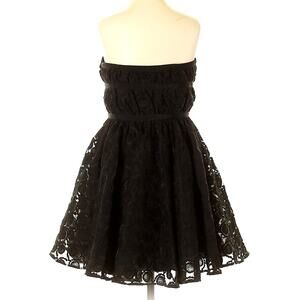 Pearl Georgina Chapman of Marchesa Strapless Black Lace Tulle Cocktail Dress 4