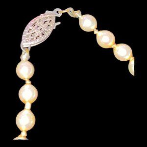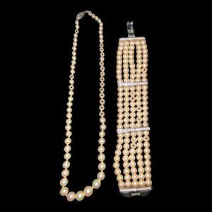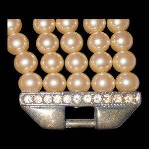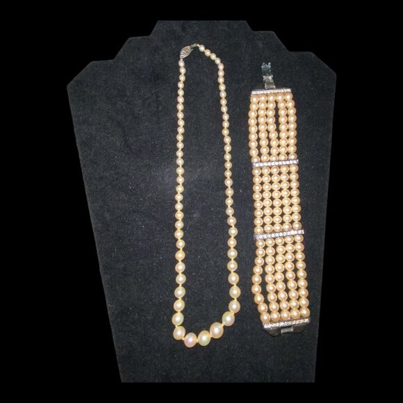 Pearl Glass Bead Necklace Bracelet Set Rhinestones Vintage