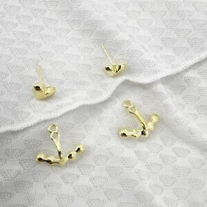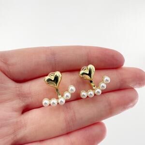 Pearl Heart Earrings, Dainty Gold Studs, Minimalist Pearl Beaded Earrings
