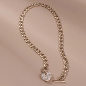 Pearl Heart Pendant Curb Chain Necklace, Pearl Heart Necklace, Gold Pearl Heart Necklace