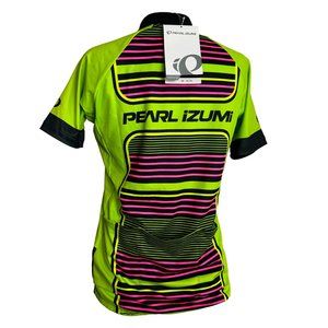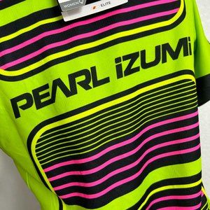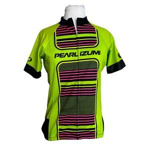 Pearl Izumi Elite Womens Cycling Bike Jersey Size Large Full Zip Green Pink New Short Sleeve Polyester Machine Wash.